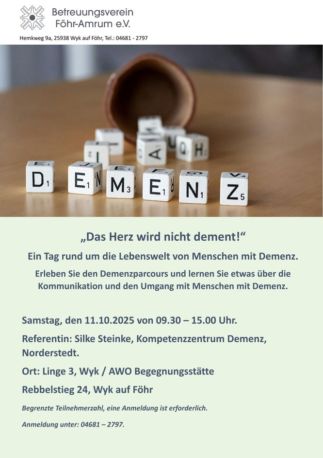Anmeldung bis 10 Uhr am Veranstaltungstag unter:
